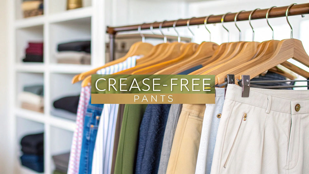 The good news is that avoiding this is easier than you think. It's not just about how you hang your pants; it's about building an organized closet system that protects them. For tougher fabrics, we’ll use the fold-over method, and for more delicate materials, the clip method is the way to go. Once you integrate these techniques into your closet organization routine, you'll spend less time ironing and more time enjoying your clothes.