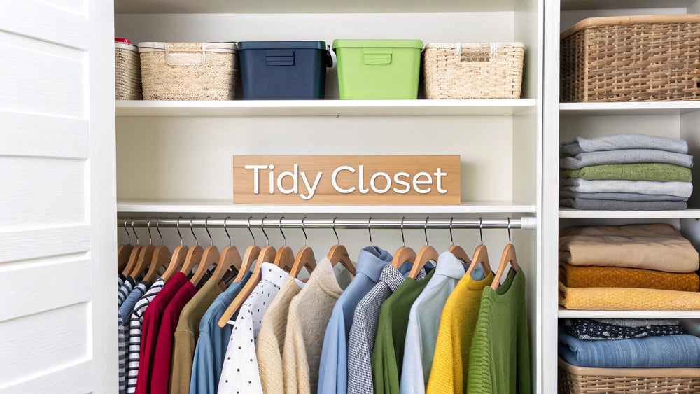 Don't try to tackle the whole closet at once—you'll burn out. Go section by section. As you handle each piece of clothing, ask yourself the tough questions. Have I worn this in the past year? Do I feel confident in it? If not, it's time for it to go into one of the other boxes. For a more detailed walkthrough, you can check out our complete guide on how to declutter your closet.